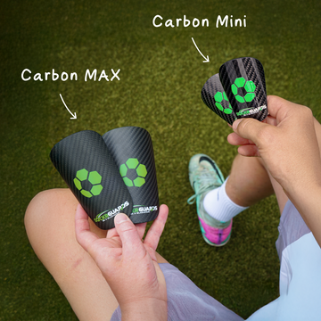 Onze carbon scheenbeschermers, de Carbon MAX en Carbon Mini, bieden de beste bescherming voor voetbalspelers van alle leeftijden.